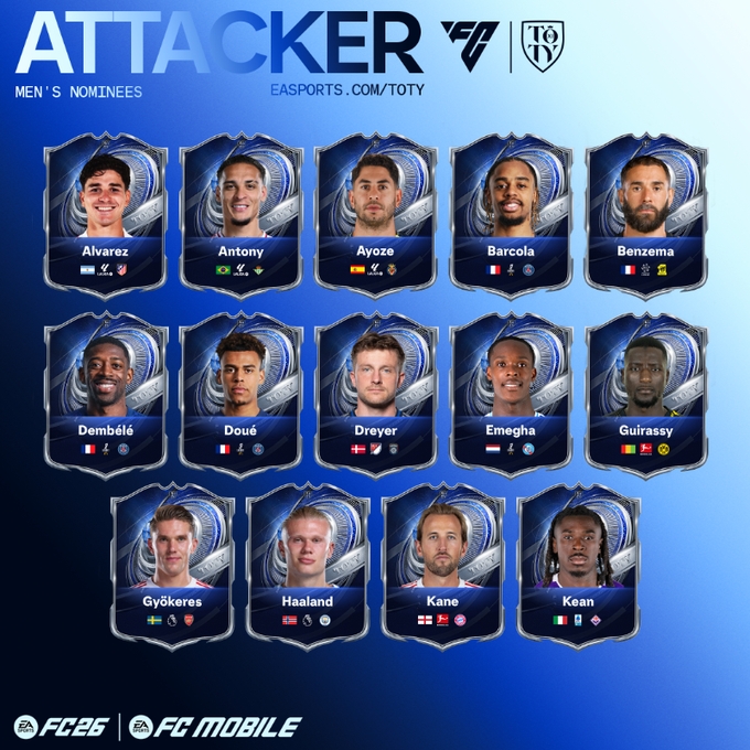 01月08日讯 EA FC26官方公布了年度最佳阵容(年度蓝)的候选名单,其中萨拉赫、亚马尔和拉菲尼亚作为中场入选,在贝蒂斯表现出色的安东尼入选了前锋候选名单,梅西、C罗也入选前锋候选名单。